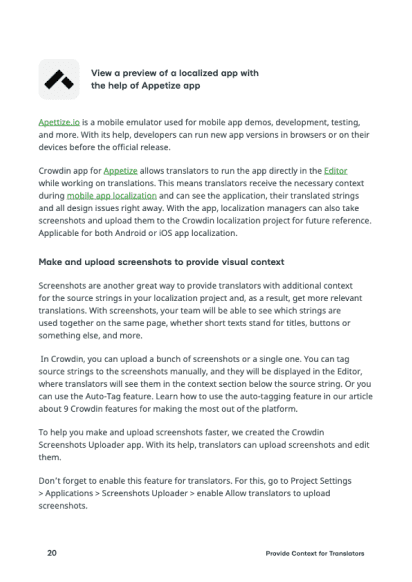 Crowdin is a cloud-based localization software for teams. It helps you create and manage all your multilingual content in one place. You can connect 550+ tools to translate your app content, automate content sync, provide context for translators, use machine translation, integrate with iOS and Android SDKs, and much more.
